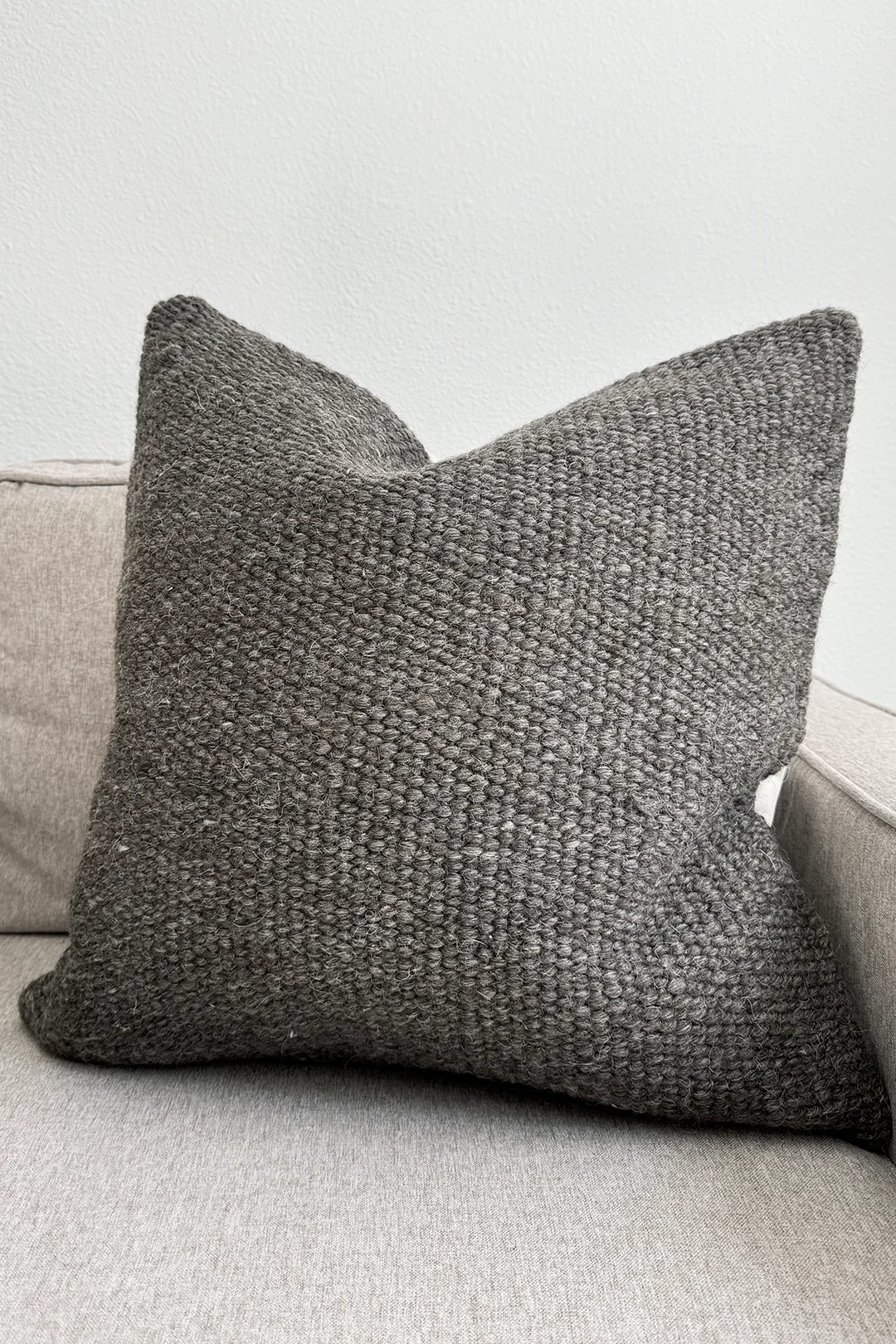 Honoring the Quichua word for “weaver,” the Aaq Cushion celebrates the skilled hands behind each woven creation. Made from 100% carded wool in rich dark gray and natural tones, it blends warmth with refined elegance. The back is crafted from durable 100% duck canvas cotton, and the high-quality bronze metal zipper adds a touch of sophistication.