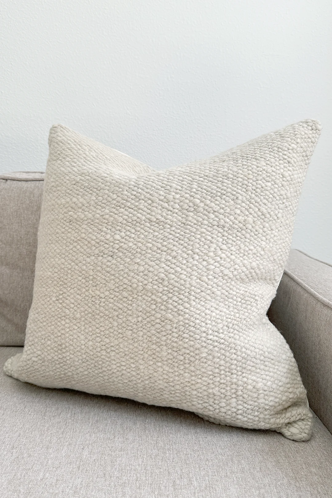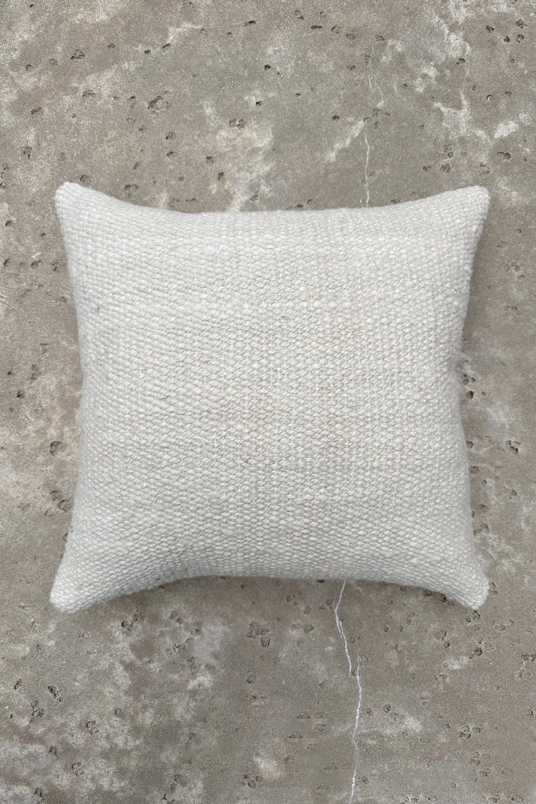 Design: A soft natural wool front, highlighting the organic texture and depth of handwoven craftsmanship.